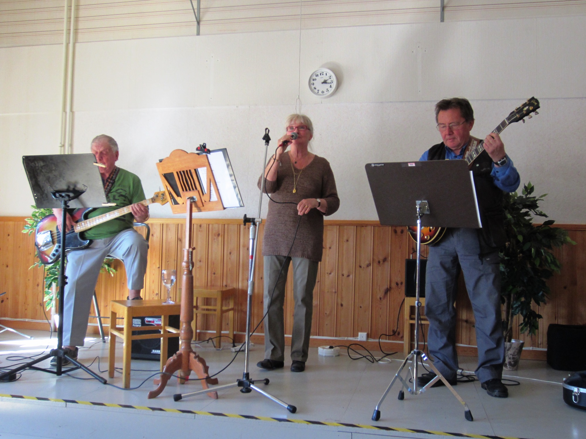 Efter detta framträdde Thure Linder som sångsolist och sjöng ”En gammal sjömansvisa”. Det blev både nostalgiska och lite modernare låtar som framfördes med stor spelglädje av dessa rutinerade musiker. Börje Elofsson tackade dem för deras fina underhållning, under publikens applåder.