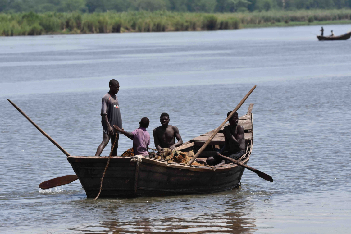Vi får en härlig kanottur i Liwondes nationalpark. Det är jag, Sven-Erik, en paddlare/stakare och en guide. Vattennivån är mycket låg. Vår stakare får titt som tätt hoppa av kanoten och skjuta på. Det känns lite si och så med tanke på att det finns gott om krokodiler och flodhästar. När jag frågar vår guide så svarar han att krokodilerna “inte finns här”.