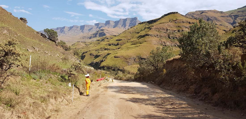 Vi åker mot Drakensberg, de mäktiga bergen som utgör gränsen mot Leshoto. På vintern kommer det snö i de övre delarna. Förmodligen enda snön man kan hitta i södra Afrika. Vägen från Eshowe till Underberg, byn “nedanför berget”, är betagande vacker. Ett grönt böljande, frodigt landskap. Ibland känns det som vi är i Skottland.