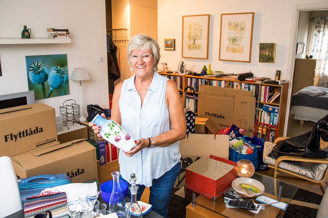 Karin Ricklid står mitt i flytten när vi träffar henne. Hon har bytt sin tvårummare till en etta. Allt för att kunna fortsätta med det hon tycker allra mest om – att resa.
