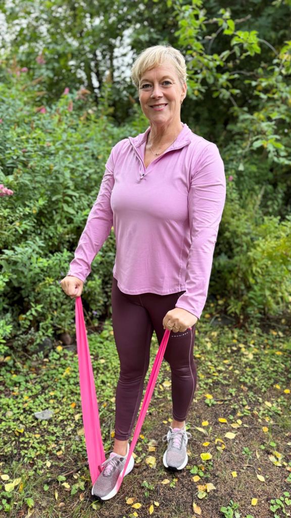 Många seniorer är väldigt flitiga med att promenera, vilket naturligtvis är jättebra för hjärtat, balansen och benen. Men hur står det till med styrketräningen för överkroppen? En stark överkropp gör det lättare att bära och dra och dessutom blir hållningen bättre. Varför inte stoppa gummibandet i fickan på nästa promenad? Stanna vid något fint ställe och kör dessa tre övningar.