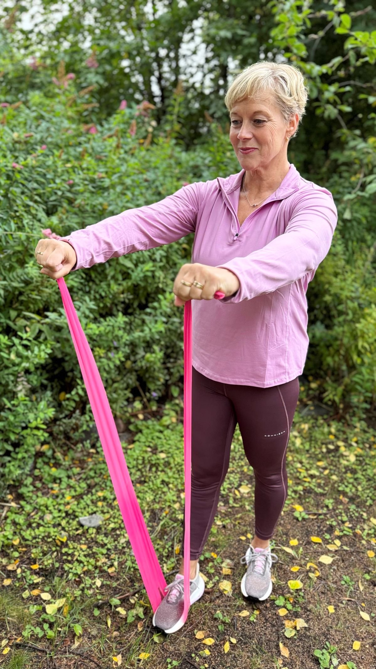 Många seniorer är väldigt flitiga med att promenera, vilket naturligtvis är jättebra för hjärtat, balansen och benen. Men hur står det till med styrketräningen för överkroppen? En stark överkropp gör det lättare att bära och dra och dessutom blir hållningen bättre. Varför inte stoppa gummibandet i fickan på nästa promenad? Stanna vid något fint ställe och kör dessa tre övningar.