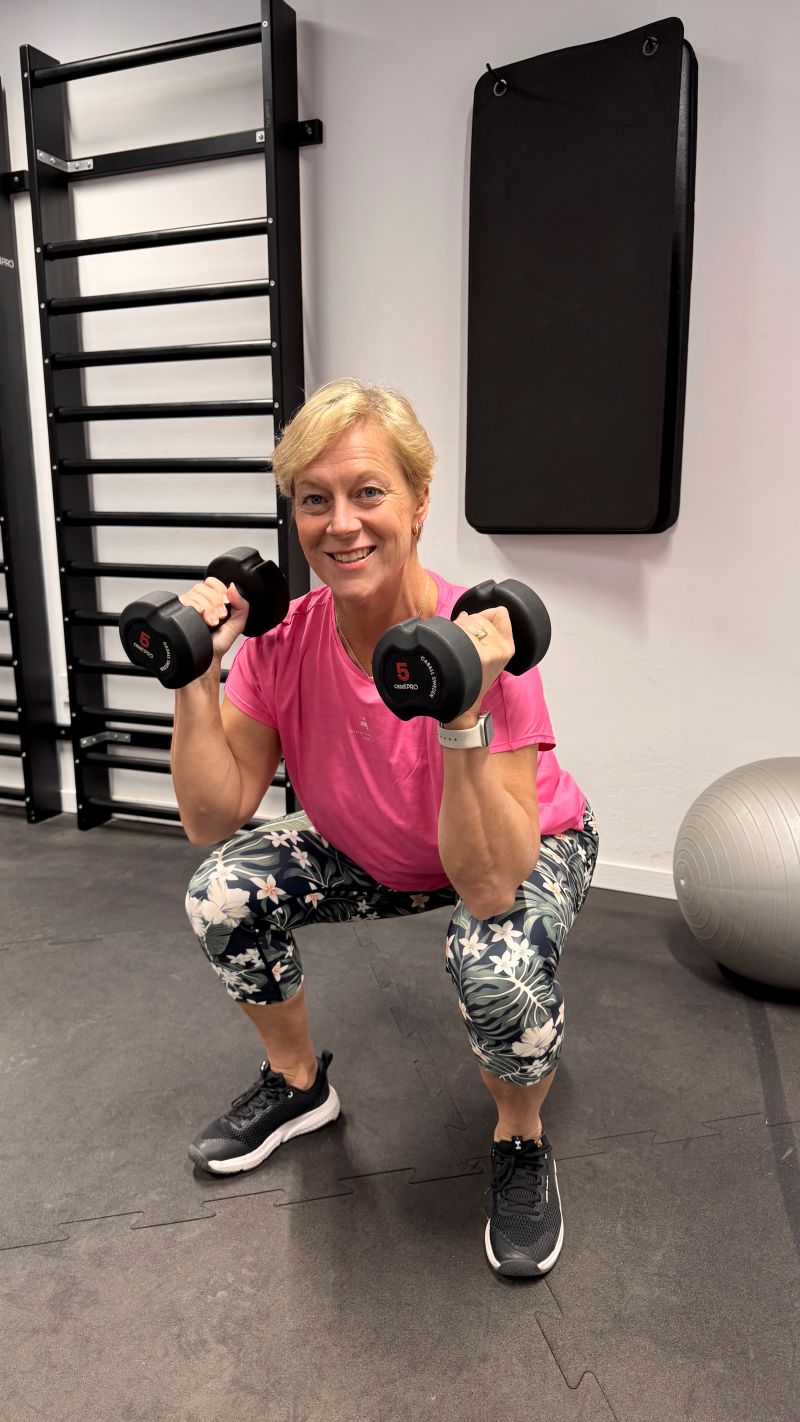 Tränar: framsida lår, rumpa, axlar, triceps och bål.