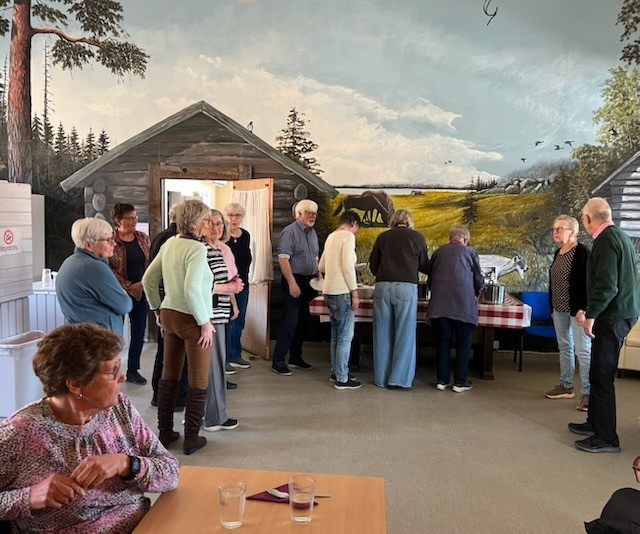 Träffen inleddes med lunch som bestod av ärtsoppa med tillbehör. Ankis goda morotskaka uppskattades till kaffet på maten, likaså att äta och prata med gamla och nya vänner.
