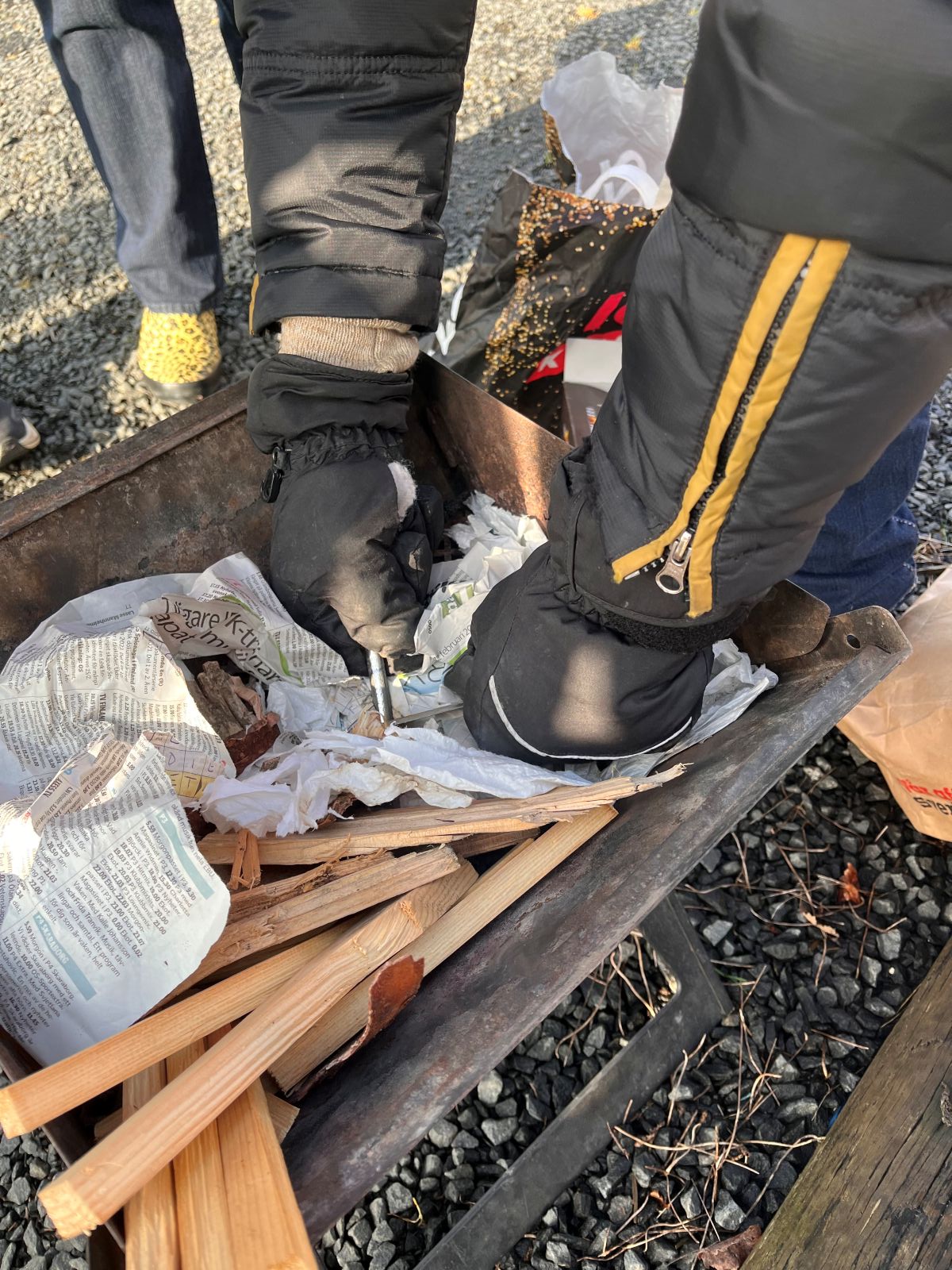Christina från Vuxenskolan berättade för oss vad som är bra att ha i en beredskapslåda hemma. Därefter testade några på att tända grillen med tändstål. Efter ett par försök var grillen tänd.