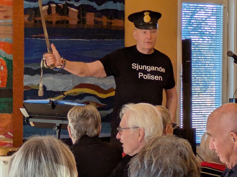 Den sjungande polisen Michael Lund stod för dagens underhållning. Han sjöng och berättade om sina 26 år som polis vid Norrmalmspolisen på ett mycket intressant och underhållande sätt.