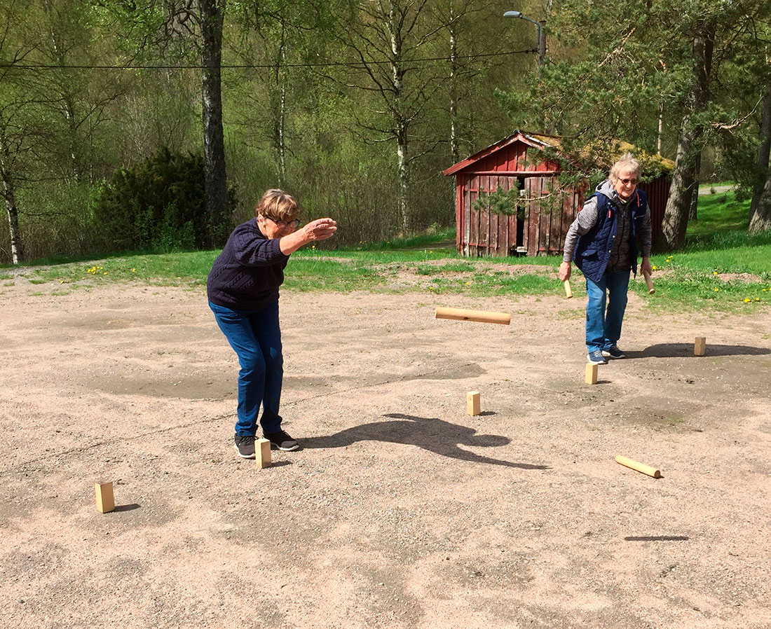 Vår hälsoinspiratör Irene Johansson ledde oss genom enkla och trevliga övningar för att få den vinterstela kroppen igång, vi provade på boulespel, kubb, kasta pil och mest populärt var att spela steggolf.