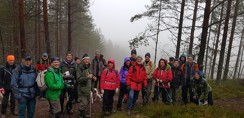 Inga problem. Tjugo personer från SPF Seniorerna Falun samlas vid jaktskyttebanan vid Finnbo, på vägen mot Svärdsjö, för att vandra i de vackra skogarna.