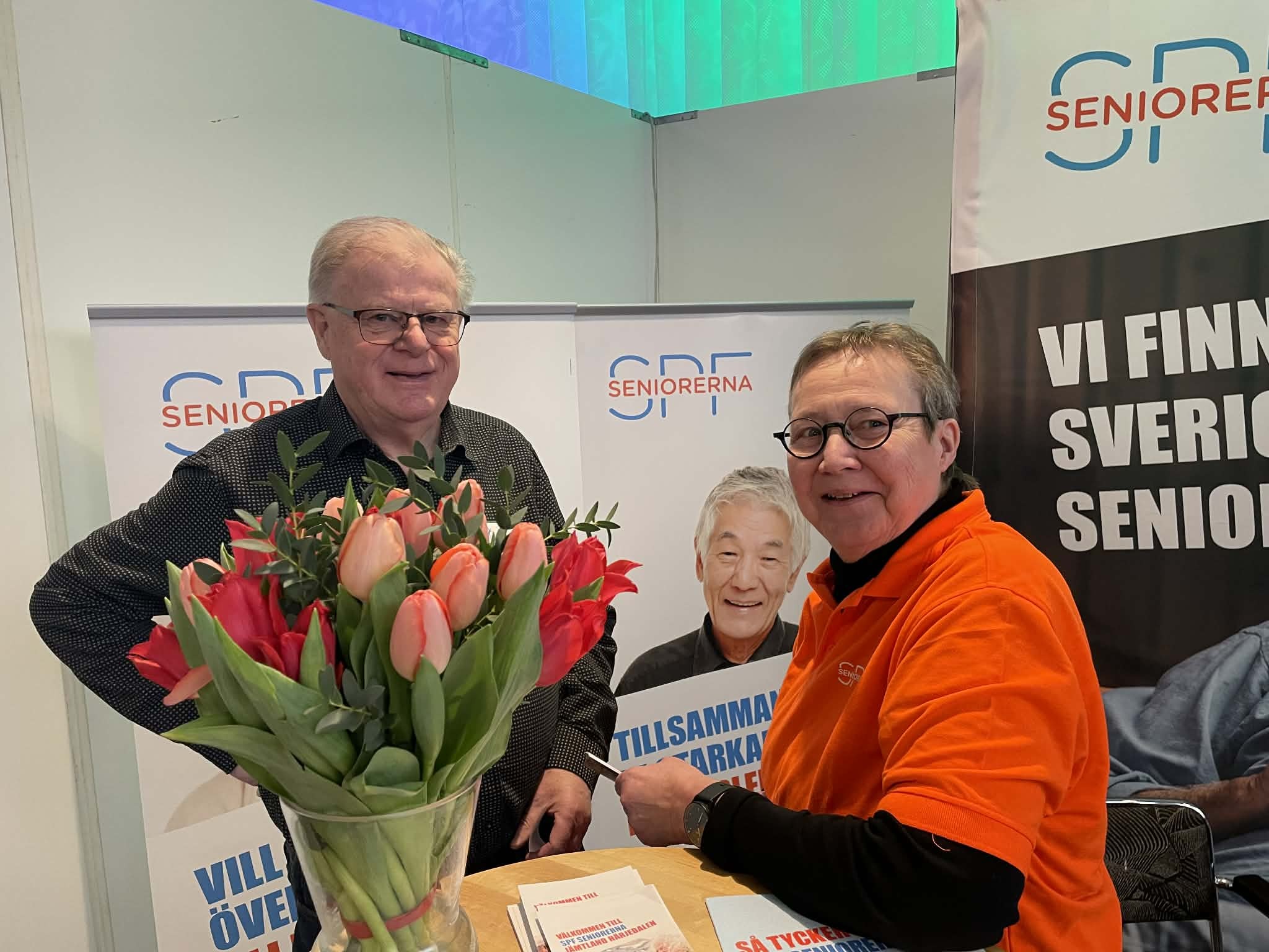 SPF Seniorernas förbundsordförande Maria Larsson besökte mässan den första dagen och var aktiv i vår monter. Maria höll sedan ett mycket intressant anförande om ”Att vara årsrik är bra”.