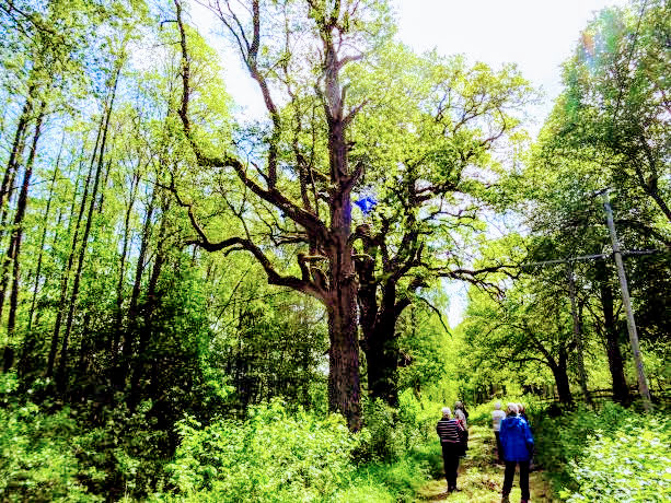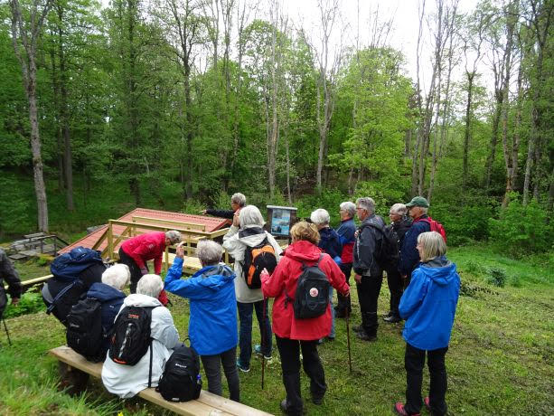 Vår Guide, Gunilla Ström, berättade om järnhanteringen som startade redan på 1700-talet och pågick till slutet av 1800-talet. Förmiddagsfika intogs vid Skönnarbosjön och vandringen fortsatte kantad av illustrerade dikter. Innan vi gick till bilarna besökte vi några jättestora ekar, varav någon sägs härstamma från Gustav Vasas tid.