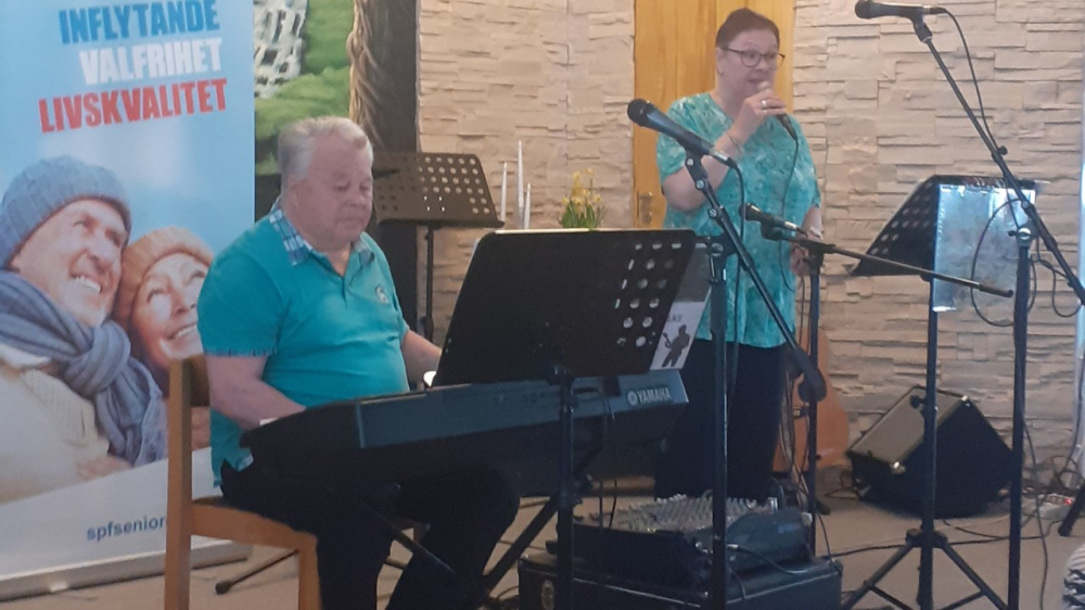 Duon intog scenen och inledde med en tjeckisk polka på den 20 år gamla keyboarden + dragspel. Därefter bjöds det på Lyckans land och Små, små ord av kärlek. En sorgesam låt om Estonia följdes av Eartha Kitts Rosenkyssar. Siws sångnummer Jag trodde änglarna fanns, framfördes lagom till att det var dags för paus. Fikagruppen Bjurholm/Nyby stod för det välkomna fikat denna dag; smörgås + gobit.