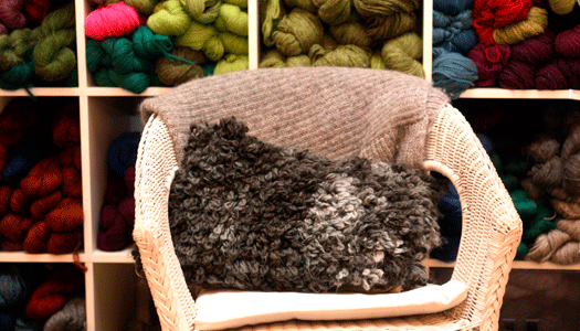 FUSKPÄLS. Lätt att sticka är kudden som ser ut som fårskinn men i själva verket är av garn