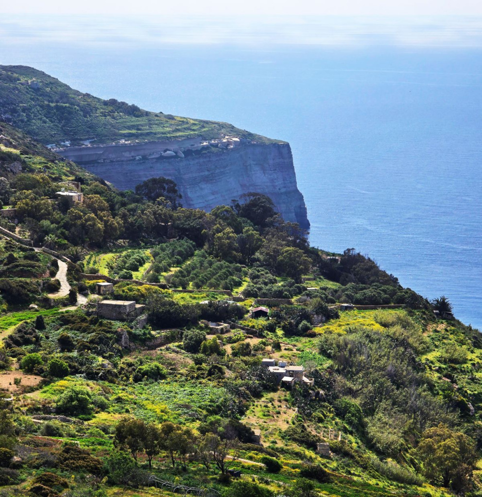 Maltas sydkust slutar i branta stup ner i havet och det finns gott om fina utsiktsplatser. Vi stannar både vid Dingli-klipporna och på kustberget ovan Blue Grotto, som man för övrigt kan åka igenom med utflyktsbåt.