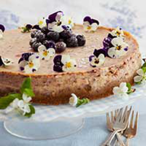 Blåbär i fyllningen gör denna cheesecake extra läcker.