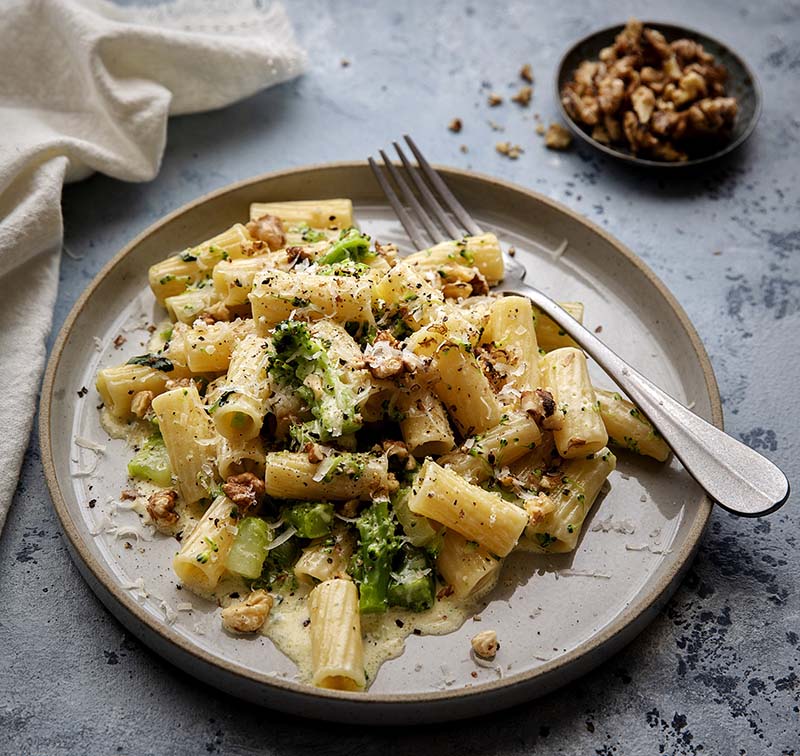 Rostade valnötter sätter pricken över i och gör att denna pasta rätt känns lyxig trots att den är så lätt att laga.