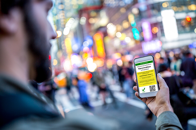 Som vaccinationsbevis används de covidbevis som visar att man är vaccinerad med minst två doser och som utfärdas av E-hälsomyndigheten: