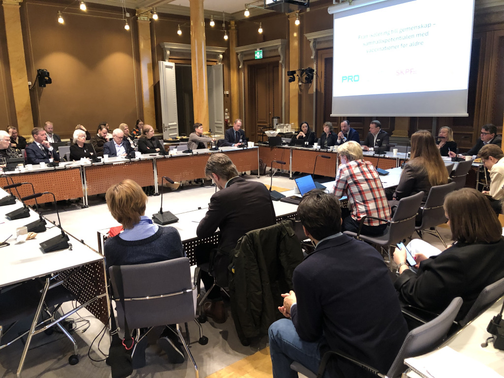 SPF Seniorerna, PRO och SKPF Pensionärerna arrangerade seminariet tillsammans med det brittiska läkemedels- och vaccinföretaget GSK (Glaxo Smith Kline). Rubriken var ”Från isolering till gemenskap – samhällspotentialen med vaccinationer för äldre”. Syftet: att lyfta behovet av ett nationellt vaccinationsprogram för äldre.